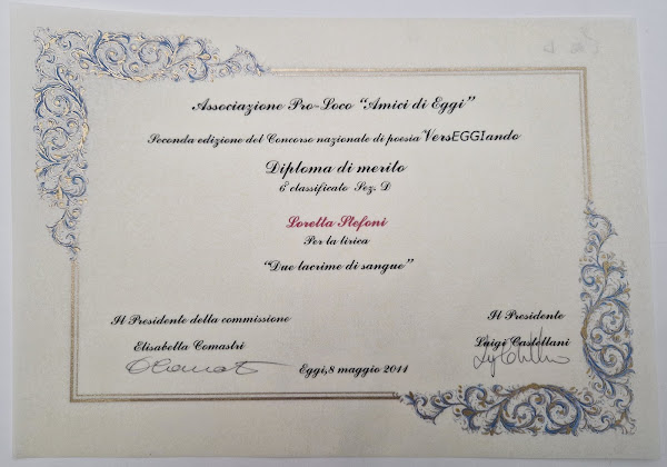 Tra i 224 autori partecipanti provenienti da varie parti dell'Italia, alla poetessa marchigiana Loretta Stefoni è stato assegnato il 6° posto con la lirica "Due lacrime di sangue" dedicata alle gemelline Alessia e Livia Schepps scomparse il 3 febbraio 2011.